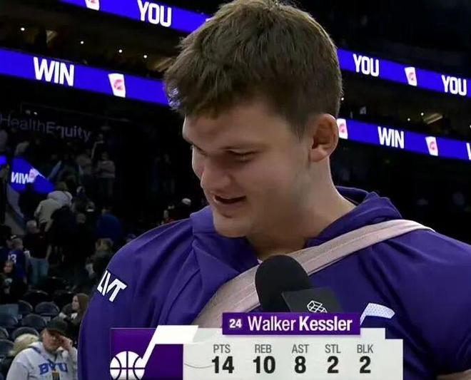 对阵爵士,3分1助1断1帽3失误6犯规