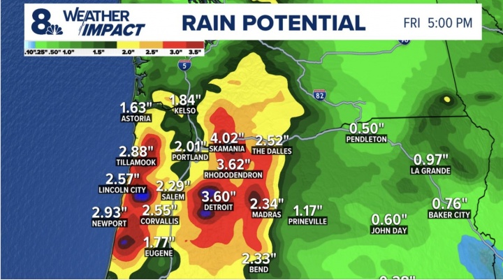 12月19日讯 据美国国家气象局报道,波特兰本周将因强大气对流迎来强降雨天气,可能导致河水暴涨及城市内涝,当地已发布洪水及山体滑坡预警,将从当地时间周三持续至周五,部分地区将持续至周六。