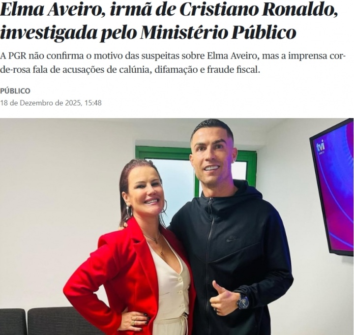 这一消息最早由八卦媒体Fama e Fofoca披露,后经多家葡媒引用报道。据称,52岁埃尔玛·阿韦罗曾销售C罗的签名球衣,但有人指控称这些球衣并非正品。